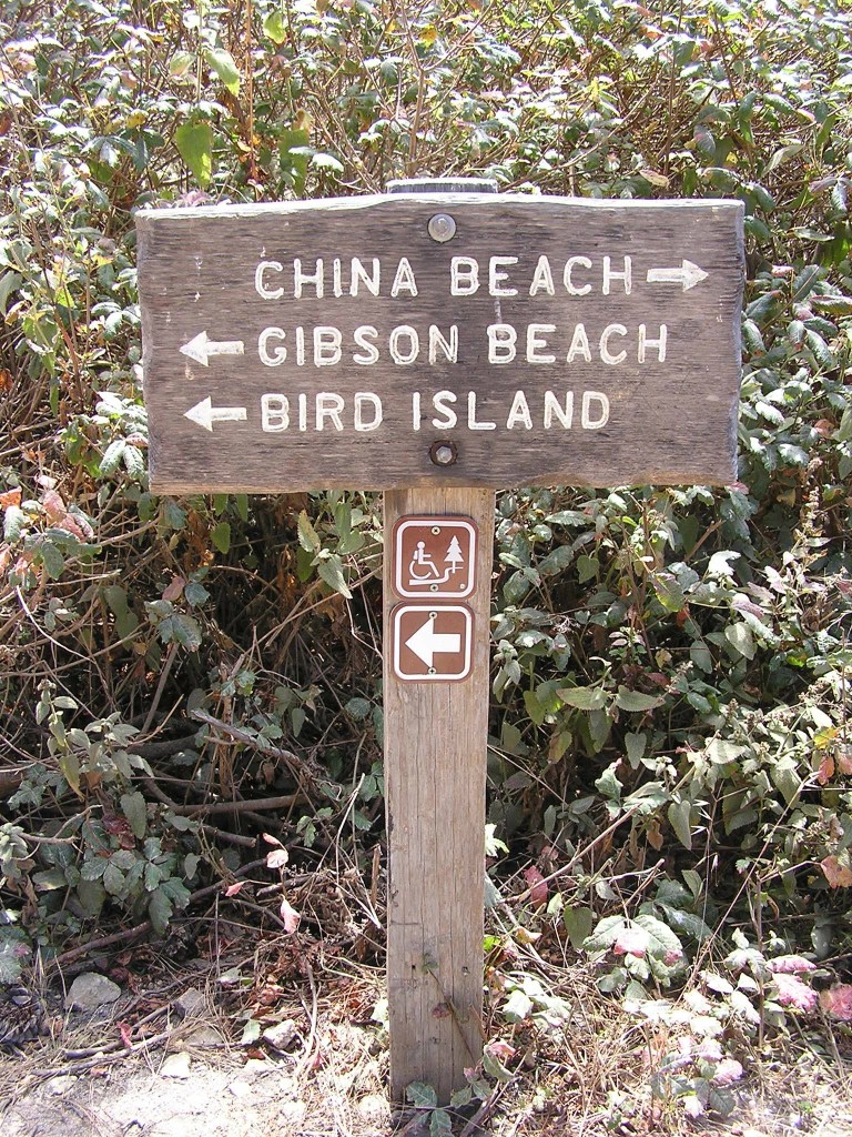 “On the way to the Bird Island overlook, you pass between woods and sea, high above two white sandy beaches – China Cove and Gibson Beach. Both are accessible via long staircases. … China Cove’s sparkling jade-green waters are framed by hanging cliff side gardens.”