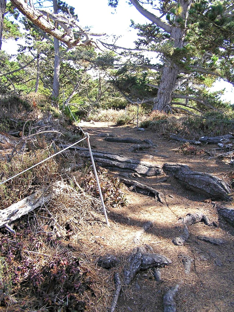 “Beyond Carmelo Meadow, this partially wheelchair-accessible trail goes through pine woods to Coal Chute Point, a good overlook for observing Harbor Seals and sea otters. Continuing on through the dense, shoulder-high coastal scrub, the path takes you to the edge of a former pasture and then up to Granite Point.”