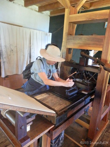After a few minutes spent enjoying the garden, a small group was gathered for a tour of the building. After giving us some historical information about the Mission our guide, Lydia, showed us the tanning area (in the lower part of the building) and then took us upstairs for a hands-on printing experience.
