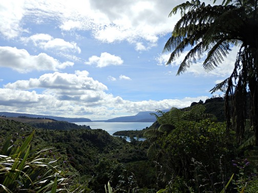 While Kim and Laurie were at the Buried Village, the rest of our group drove to Lake Tarawera.  My journal notes remind me that this area is reminiscent of Lake Tahoe (California) and the vacation houses thereon. Heavily-forested, lush, and tropical. Lonely Planet similarly describes it as “picturesque and good for swimming, fishing, cruises and walks.”