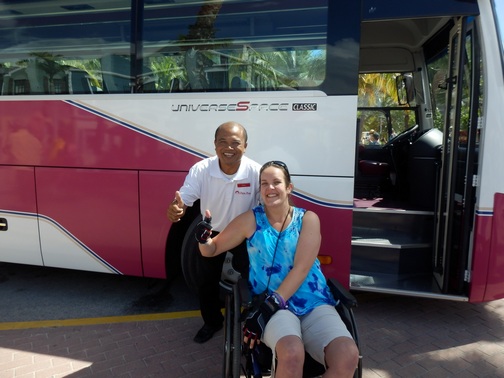 Our driver, Jimmy, was very careful in the loading and unloading of Carrieanna’s foldable wheelchair, and was gracious and helpful as she navigated the three stairs into and out of the bus.
