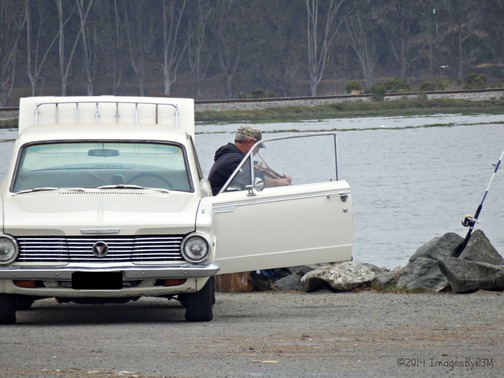 We found a nearly-empty parking lot, with one gentleman fishing near the small boat ramp. (We later heard him playing a violin, perhaps enticing the fish to take his bait?!)