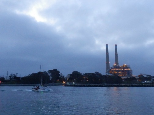 The twin smokestacks of Moss Landing Power Plant, a natural gas plant, are visible from Monterey to Santa Cruz (on the north end of the bay).