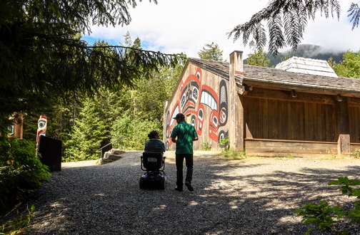 The entire park was accessible by wheelchair or mobility scooter, allowing Carrieanna to see all of the totem poles. The gift shop (not shown) was also easy for her to navigate.