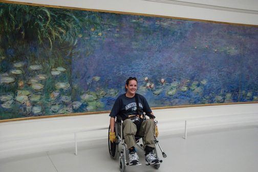 As you can imagine, the wheels of a wheelchair can become quite dirty and Carrieanna needs to protect her hands as she rolls along. The fingerless deer hide gloves provided by the Elks have kept her hands clean, warm and callous-free during her many years of self-propelled wheelchair travel.