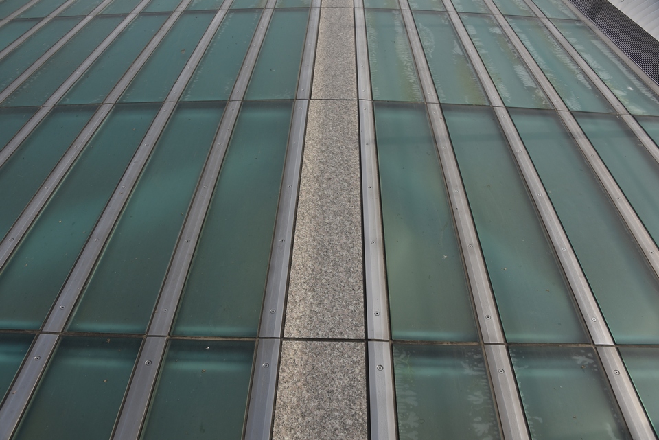 The pylon is a gnomon for a giant sundial – its markers are set for the Summer Solstice (June 21st) when its shadow moves 1 foot per minute between 11 a.m. and 3 p.m.