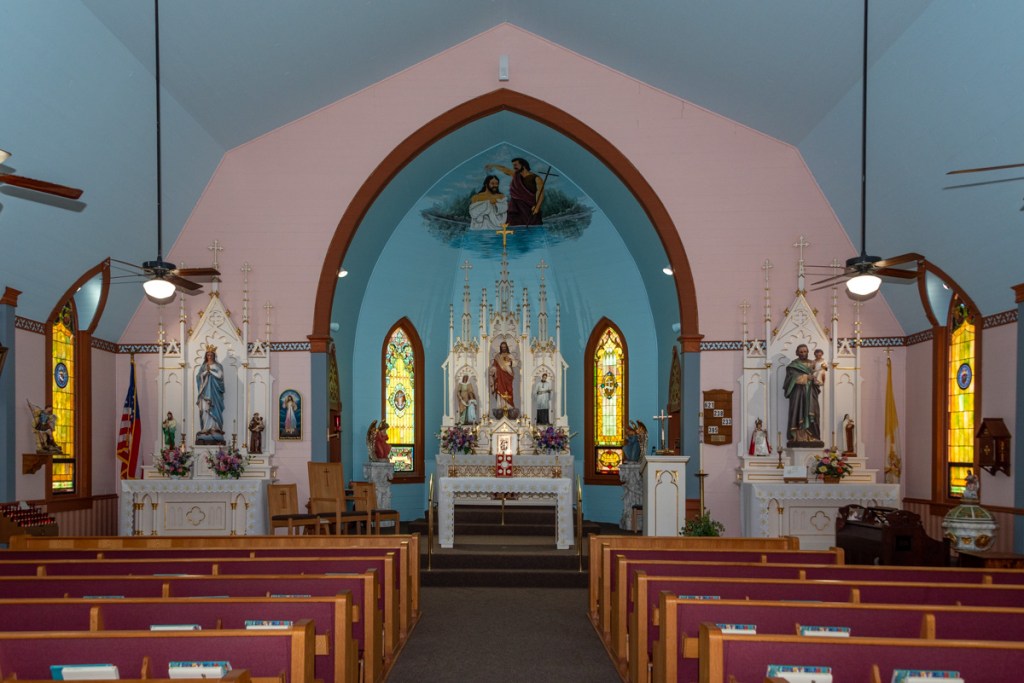 With its ornate design, paintings and stained-glass windows, St. Mary is known as the Queen of the Painted Churches.